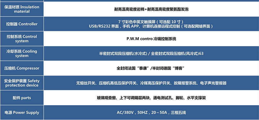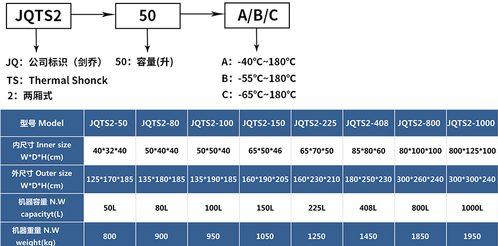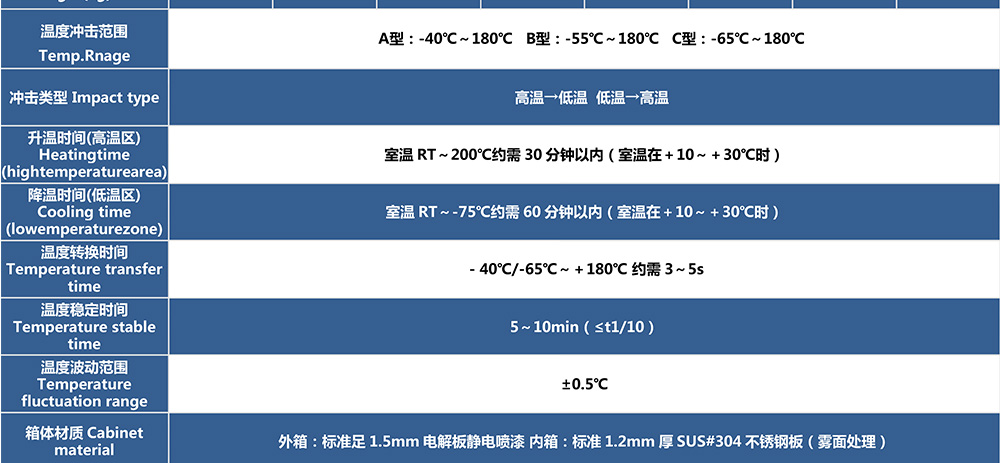 兩廂式冷熱沖擊試驗箱型號命名及參數(shù)表
