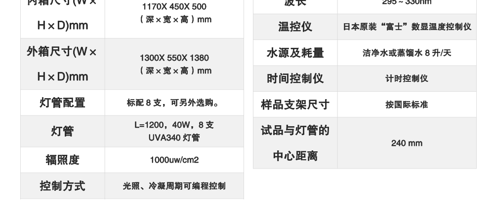 用途:紫外耐氣候試驗箱主要用于塑料,涂料、橡膠材料在模擬由太陽光,雨水、露水環境下的人工加速試驗